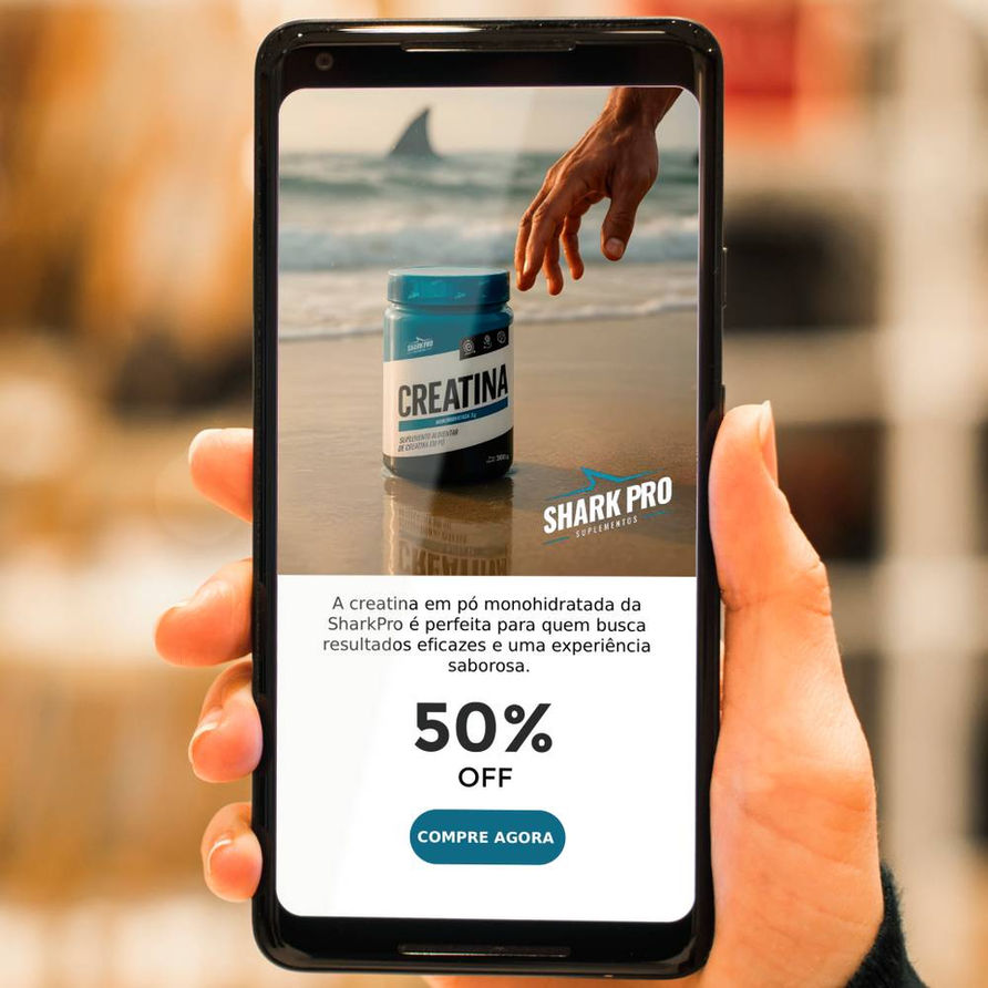 A peça mais criativa e exclusiva da linha mobile. Produzido com detalhamento visual, direção de arte e fotografia ou ilustração de alto impacto, este banner vai além da estética: é um recurso poderoso para reforçar o branding da marca de forma única, memorável e diferenciada.